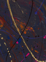 "Shine & Thrill" is a fearless co-existence of vivid and dramatic colors, a narrative of social and economic significance in the digital age. This painting catapults classic tradition into a new vision of modernity. Each layer is a journey into the fluid freedom of thought. Viewed from a distance, the painting presents a cluster of lines and planes, but up close, it reveals hidden depths. As C. G. Jung noted, art is a journey of self-discovery, a concept perfectly embodied in this piece.