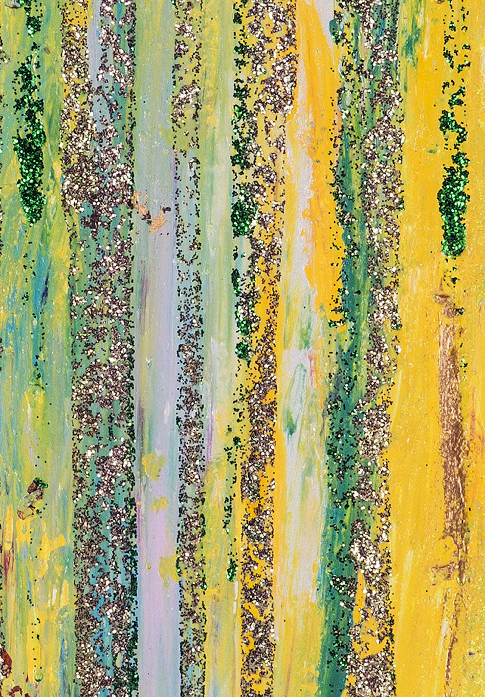 Immerse yourself in the enchanting allure of 'Dreamy Forest,' a captivating mixed media artwork from Antonia Pia Gordon's celebrated Glamorous series. This piece invites you into a world where vibrant greens dance with subtle turquoise, creating a visual symphony of color and texture.