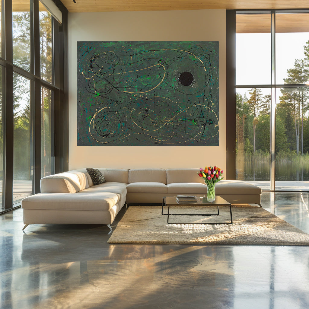 Measuring 67 x 90 inches (170 x 230 cm), this large-scale painting commands attention and transforms any room into a personal gallery. Its bold presence and dynamic composition make it an ideal statement piece for discerning art collectors and enthusiasts.