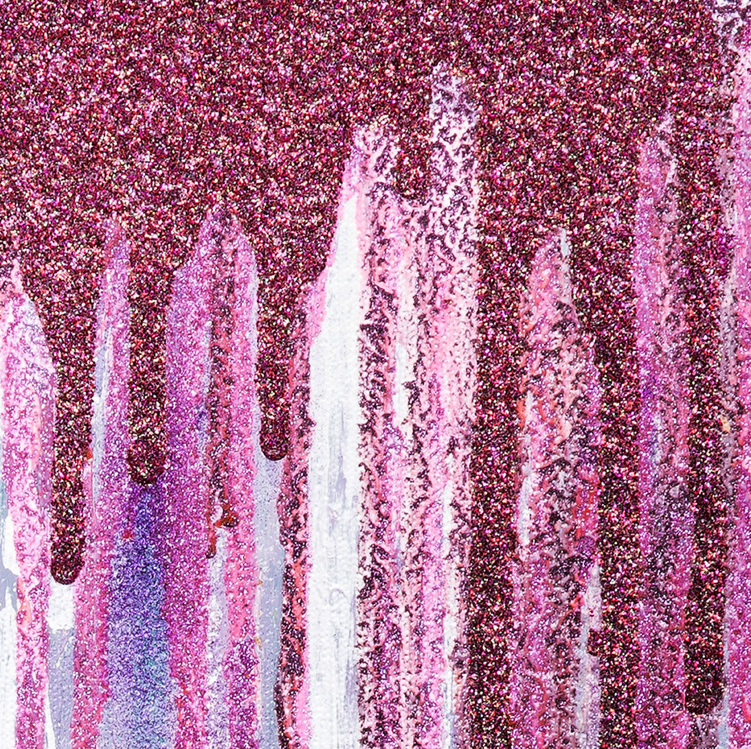 Inspired by the radiant beauty of nature, Gordon's 'Glamorous' series explores the interplay of light, space, and matter. As she reflects on her global travels, she seeks to capture the essence of glamour—the dazzling spectacle of light and colors that breathe life into the soul. The artist combines bold glitter mineral strokes, creating a visual symphony with layers of depth beneath the surface. The thematic narrative, akin to Pirandello, is meant to share the soul, with the fusion of nature and human imagination elevating the viewer to a transcendent sphere of experience.
