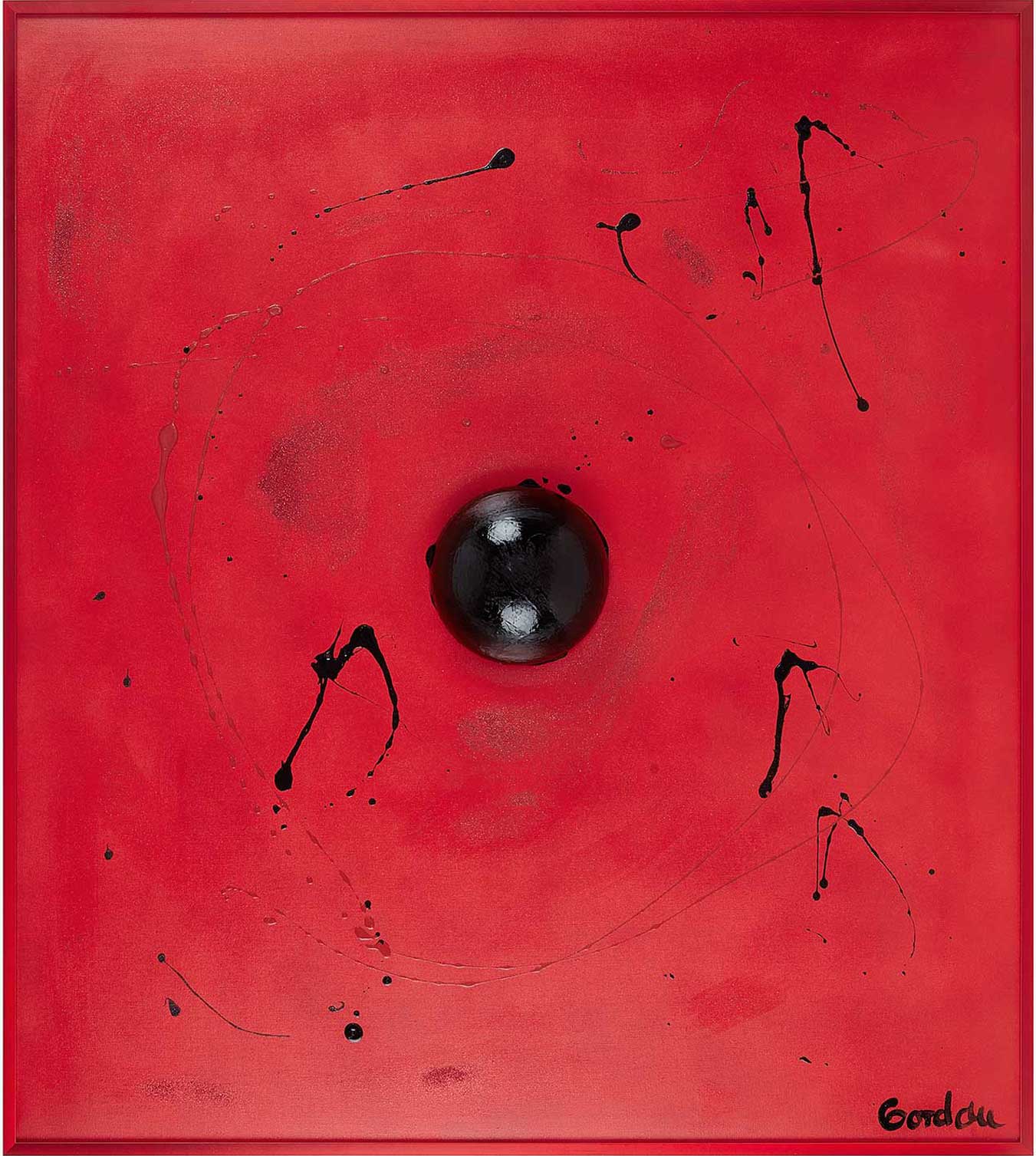 Spachteltechnik, strukturierte Acryl-Farbbasis auf Leinwand mit mehrfarbigen Schichten, verstärkt durch ausgefallene Farbkrümmungen.