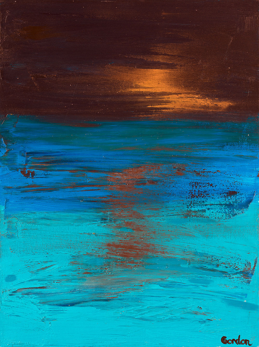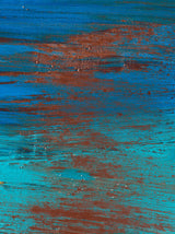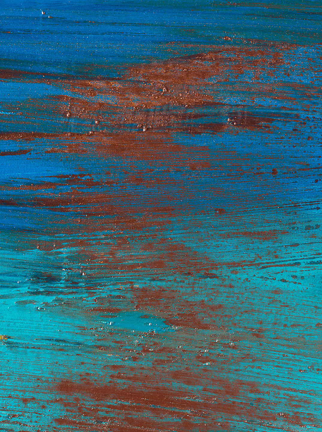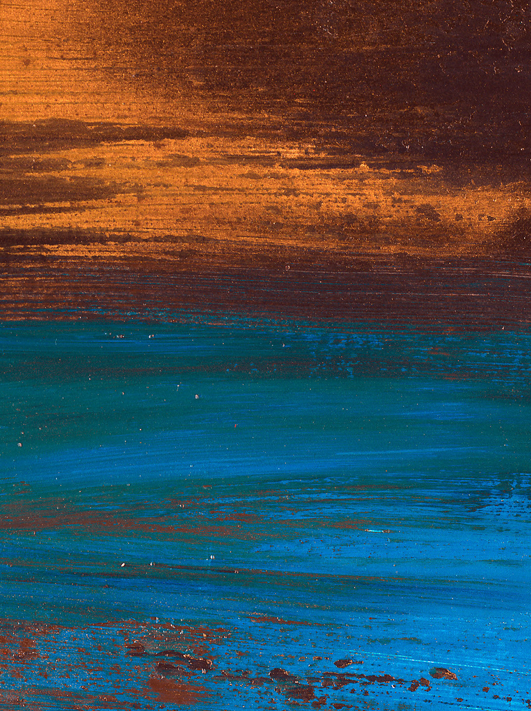 Spachteltechnik, strukturierter Acryl-Farbgrund auf Leinwand mit mehrfarbigen Schichten, die sich in horizontaler Richtung ausdehnen.