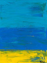 Spachteltechnik, strukturierter Acryl-Farbgrund auf Leinwand mit mehrfarbigen Schichten, die sich in horizontaler Richtung ausdehnen.