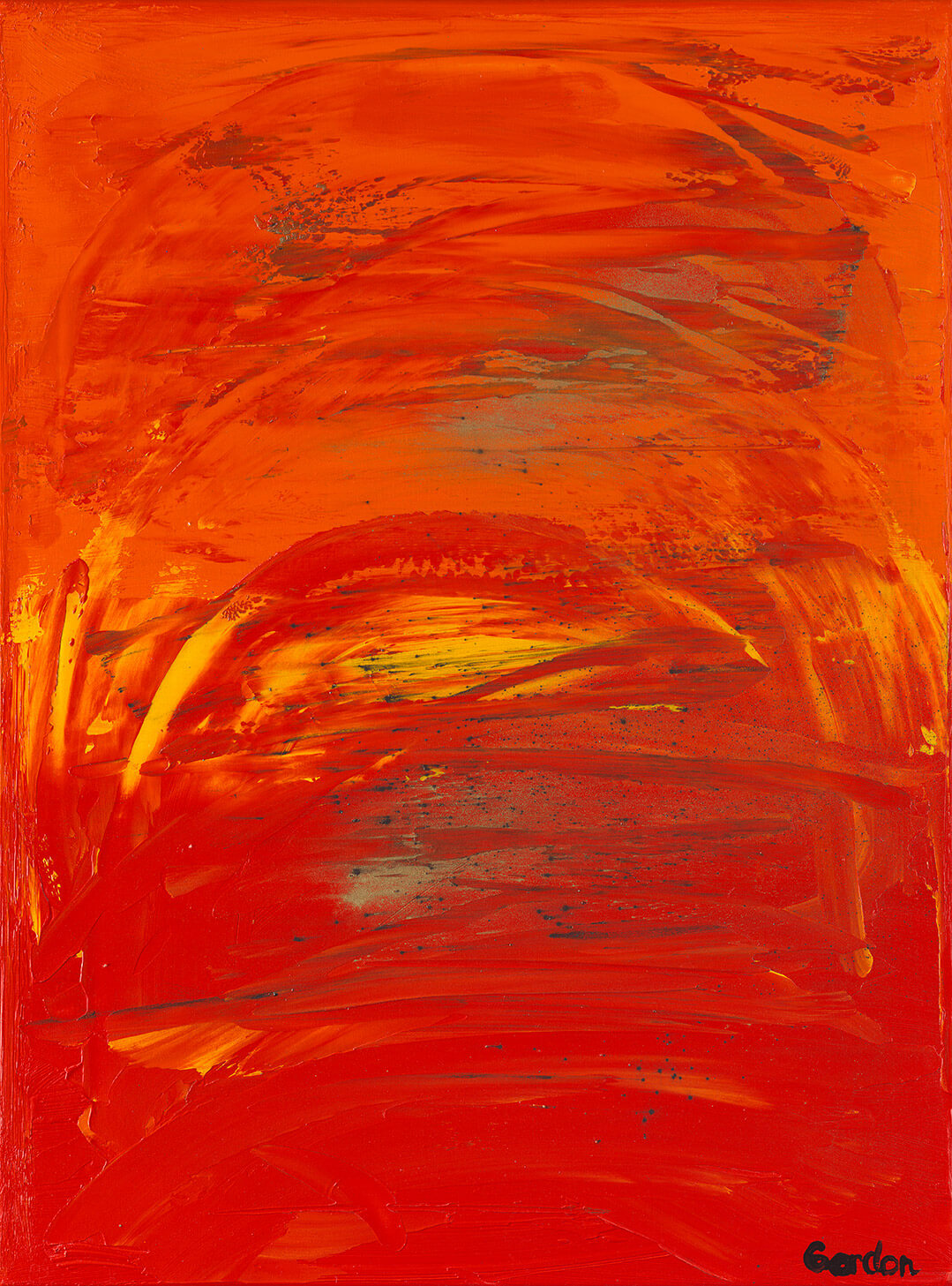Spachteltechnik, strukturierter Acryl-Farbgrund auf Leinwand mit mehrfarbigen Schichten, die sich in horizontaler Richtung ausdehnen.