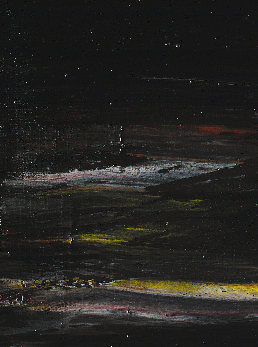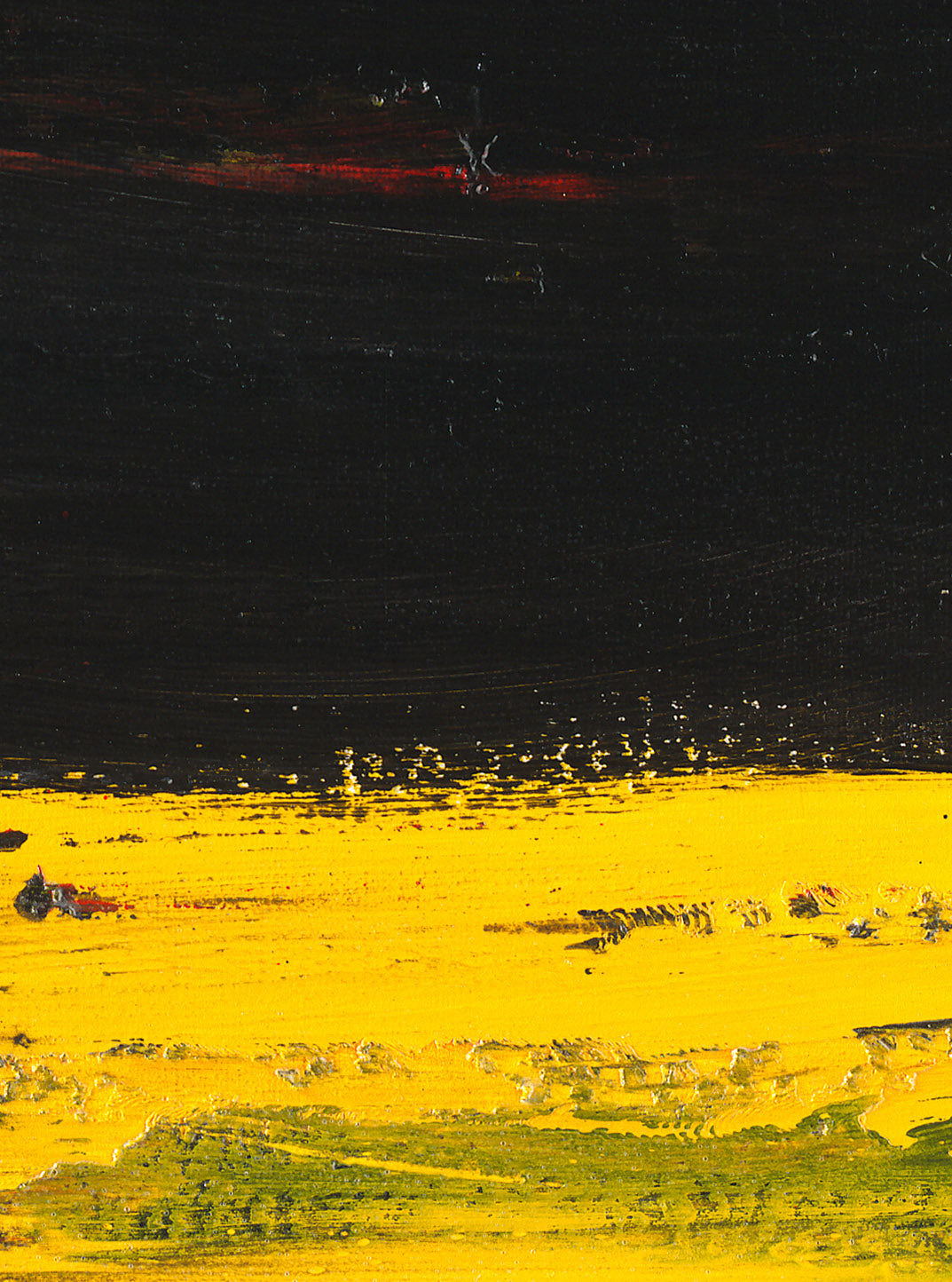 Spachteltechnik, strukturierter Acryl-Farbgrund auf Leinwand mit mehrfarbigen Schichten, die sich in horizontaler Richtung ausdehnen.
