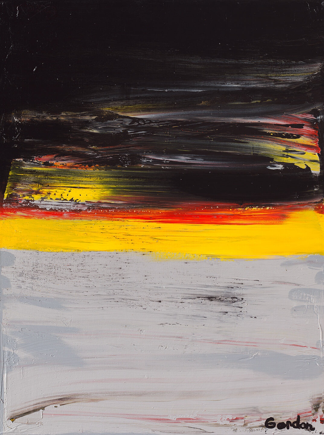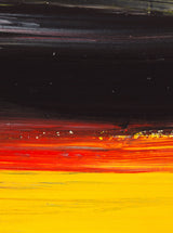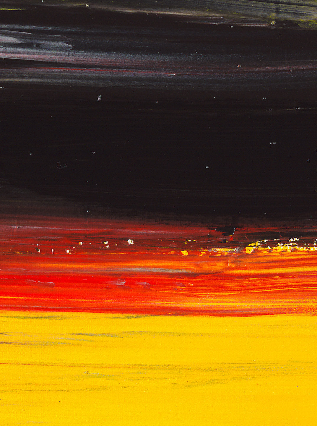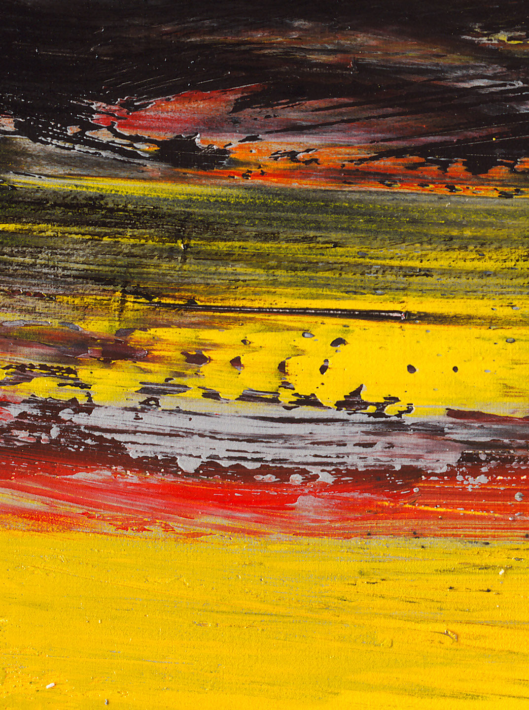 Spachteltechnik, strukturierter Acryl-Farbgrund auf Leinwand mit mehrfarbigen Schichten, die sich in horizontaler Richtung ausdehnen.
