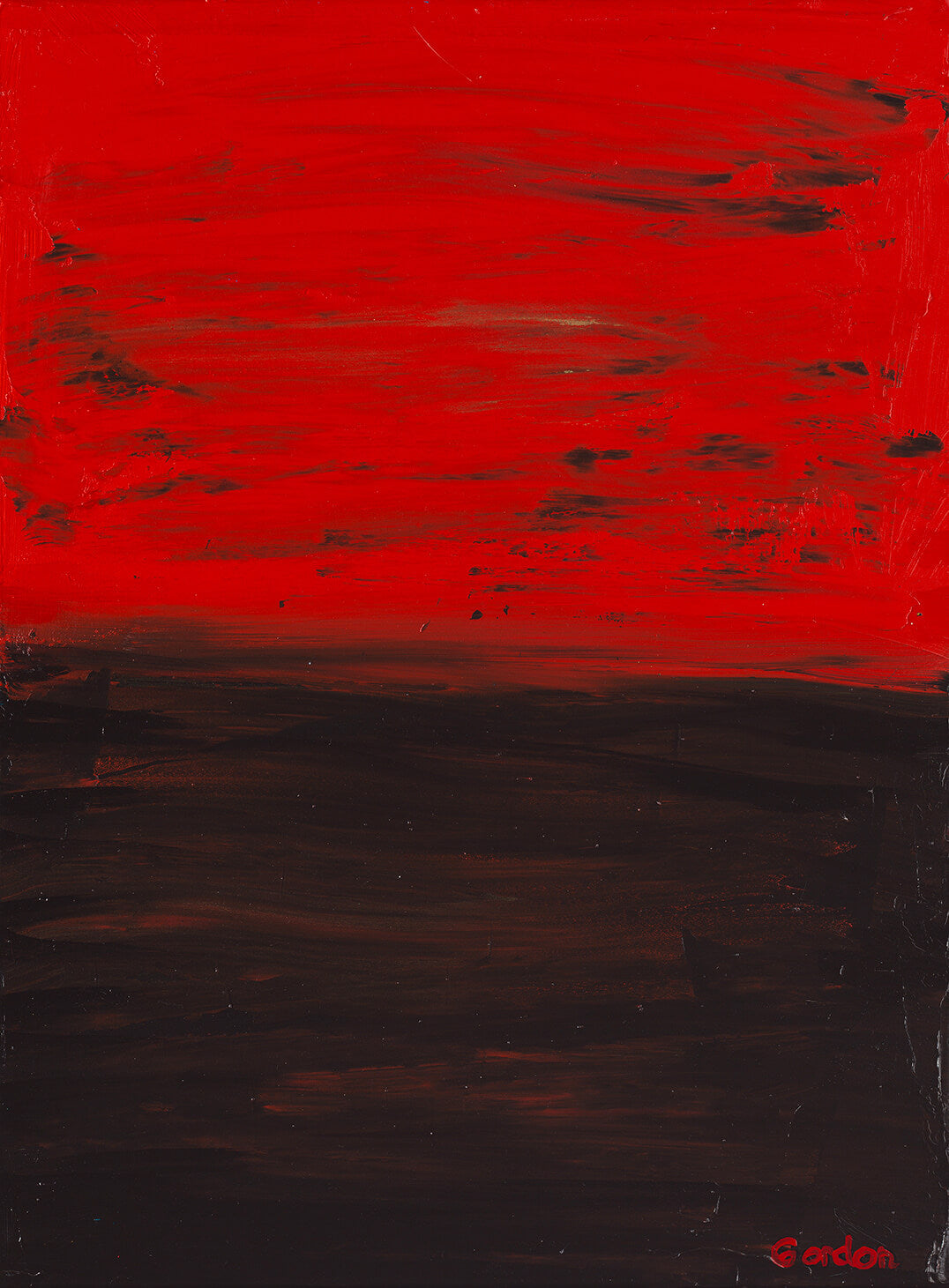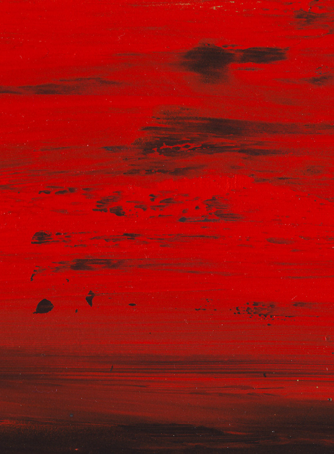 Spachteltechnik, strukturierter Acryl-Farbgrund auf Leinwand mit mehrfarbigen Schichten, die sich in horizontaler Richtung ausdehnen.