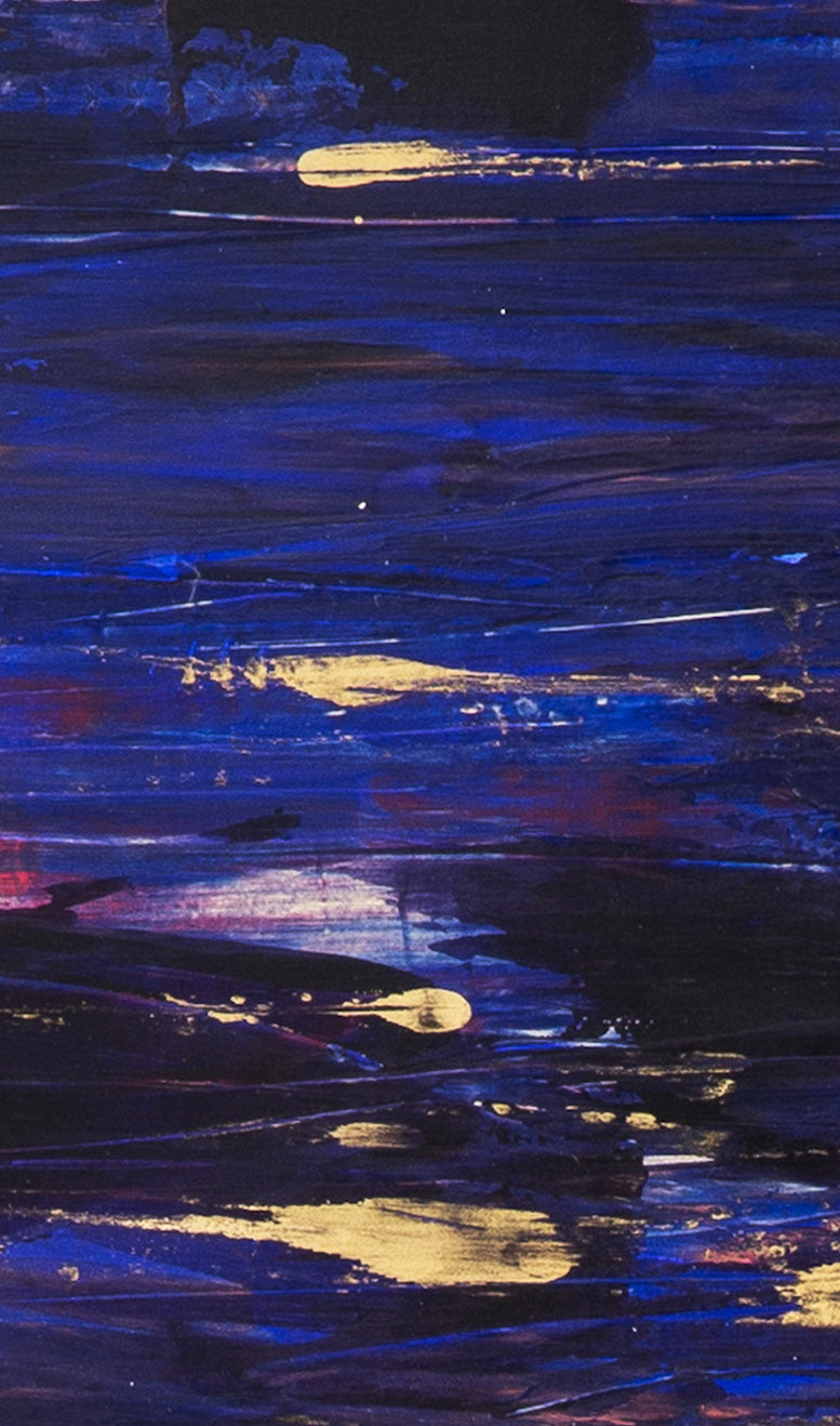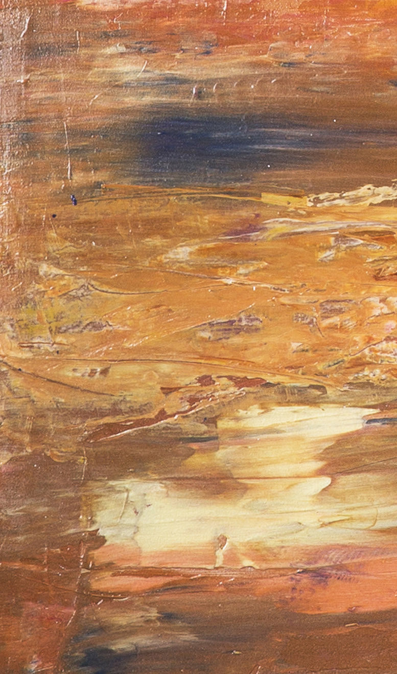 Spachteltechnik, strukturierter Acryl-Farbgrund auf Leinwand mit mehrfarbigen Schichten, die sich in horizontaler Richtung ausdehnen.