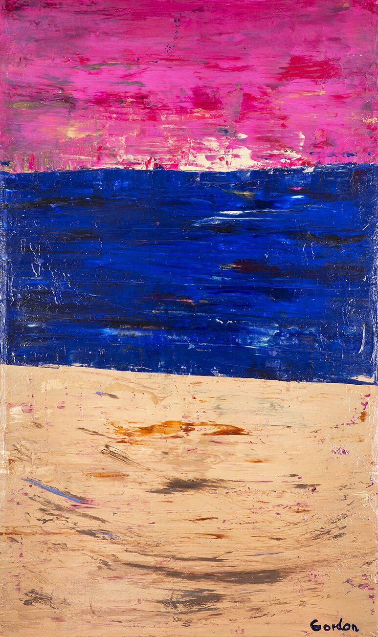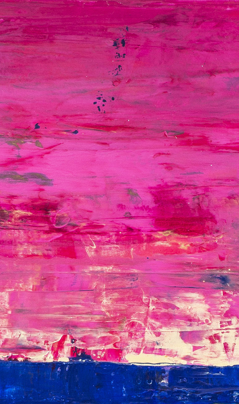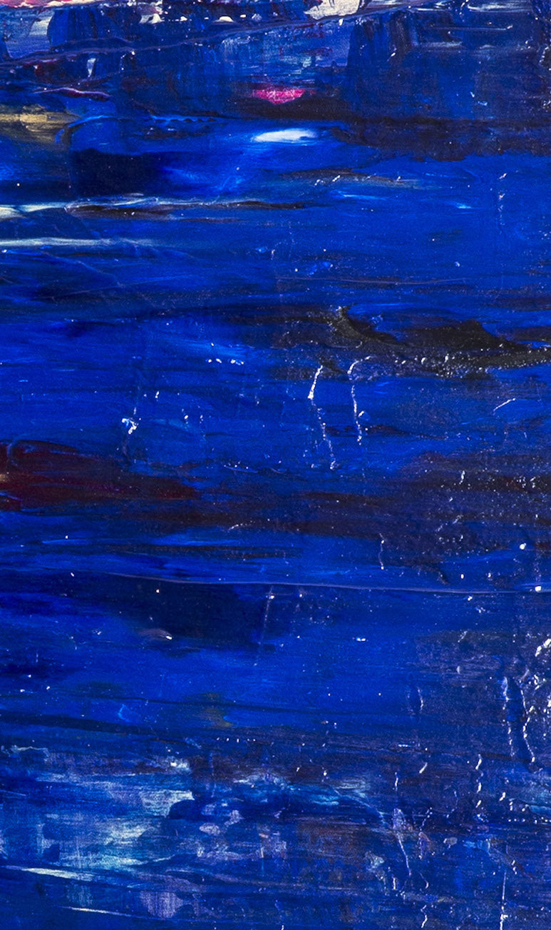 Spachteltechnik, strukturierter Acryl-Farbgrund auf Leinwand mit mehrfarbigen Schichten, die sich in horizontaler Richtung ausdehnen.