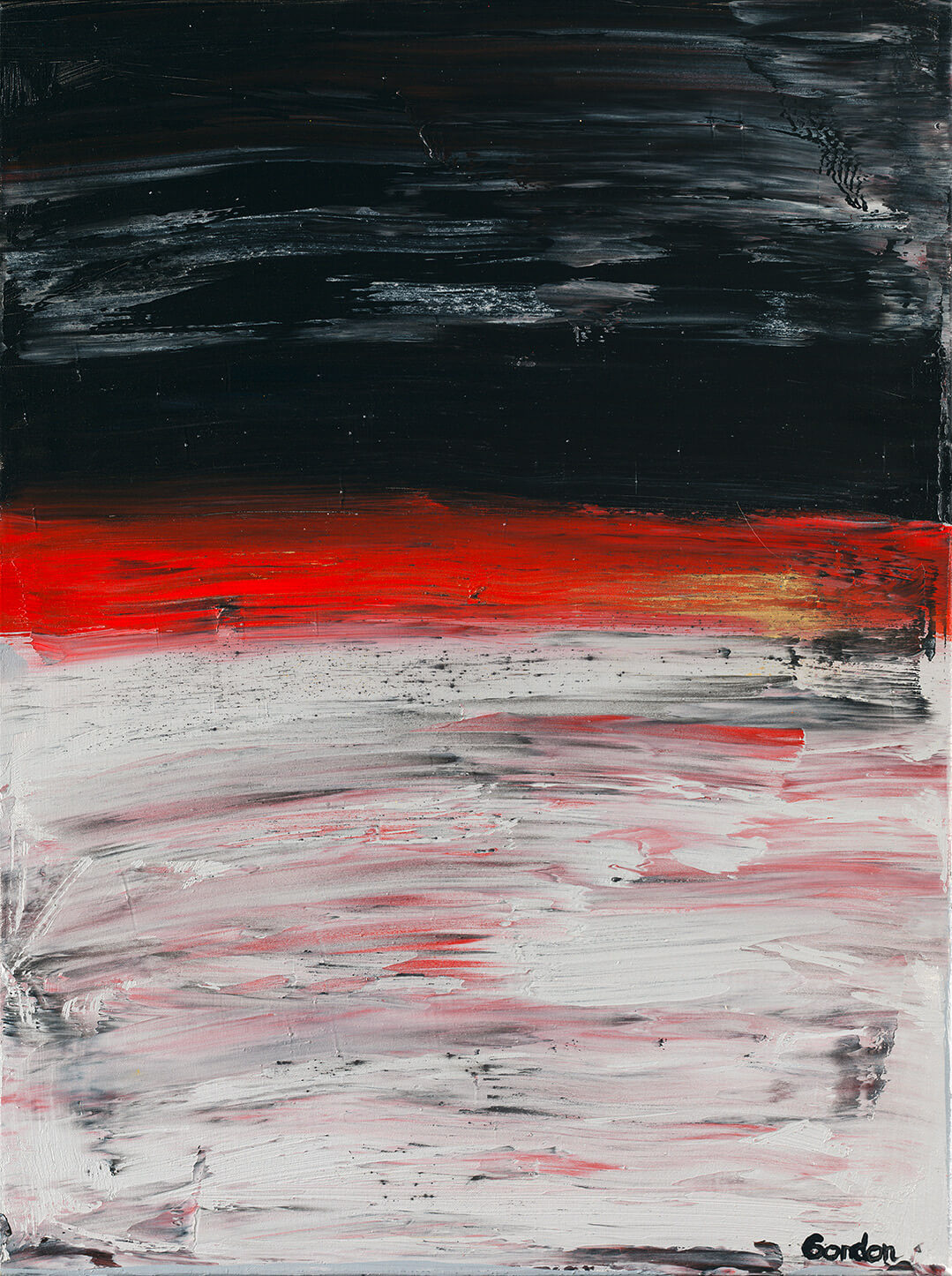 Spachteltechnik, strukturierter Acryl-Farbgrund auf Leinwand mit mehrfarbigen Schichten, die sich in horizontaler Richtung ausdehnen.