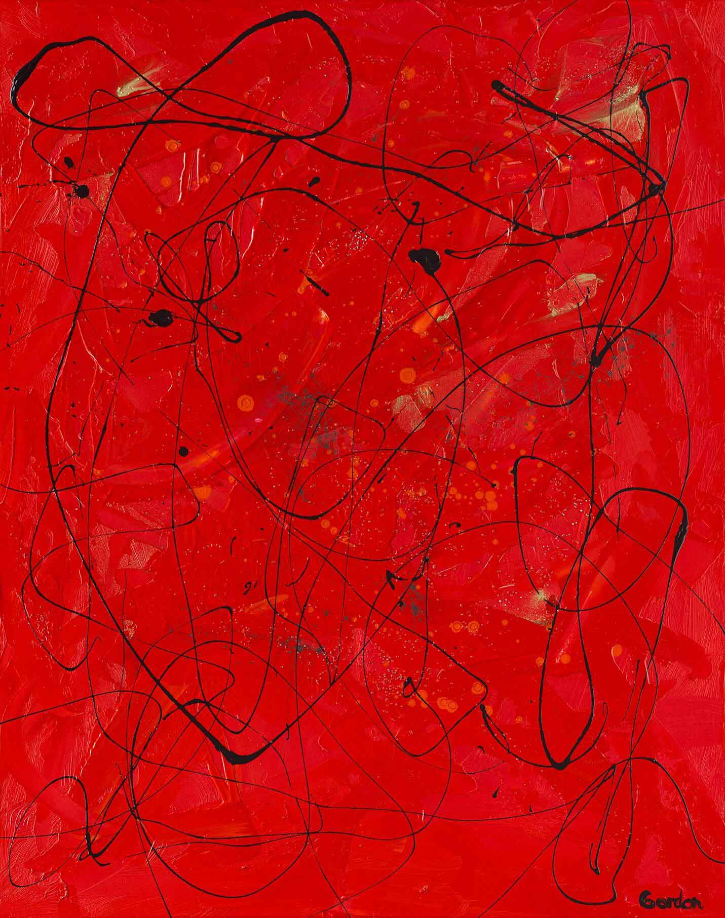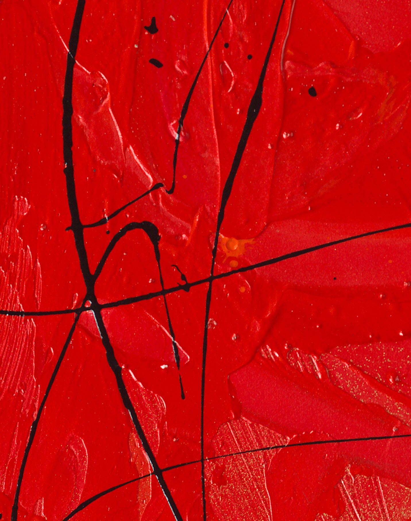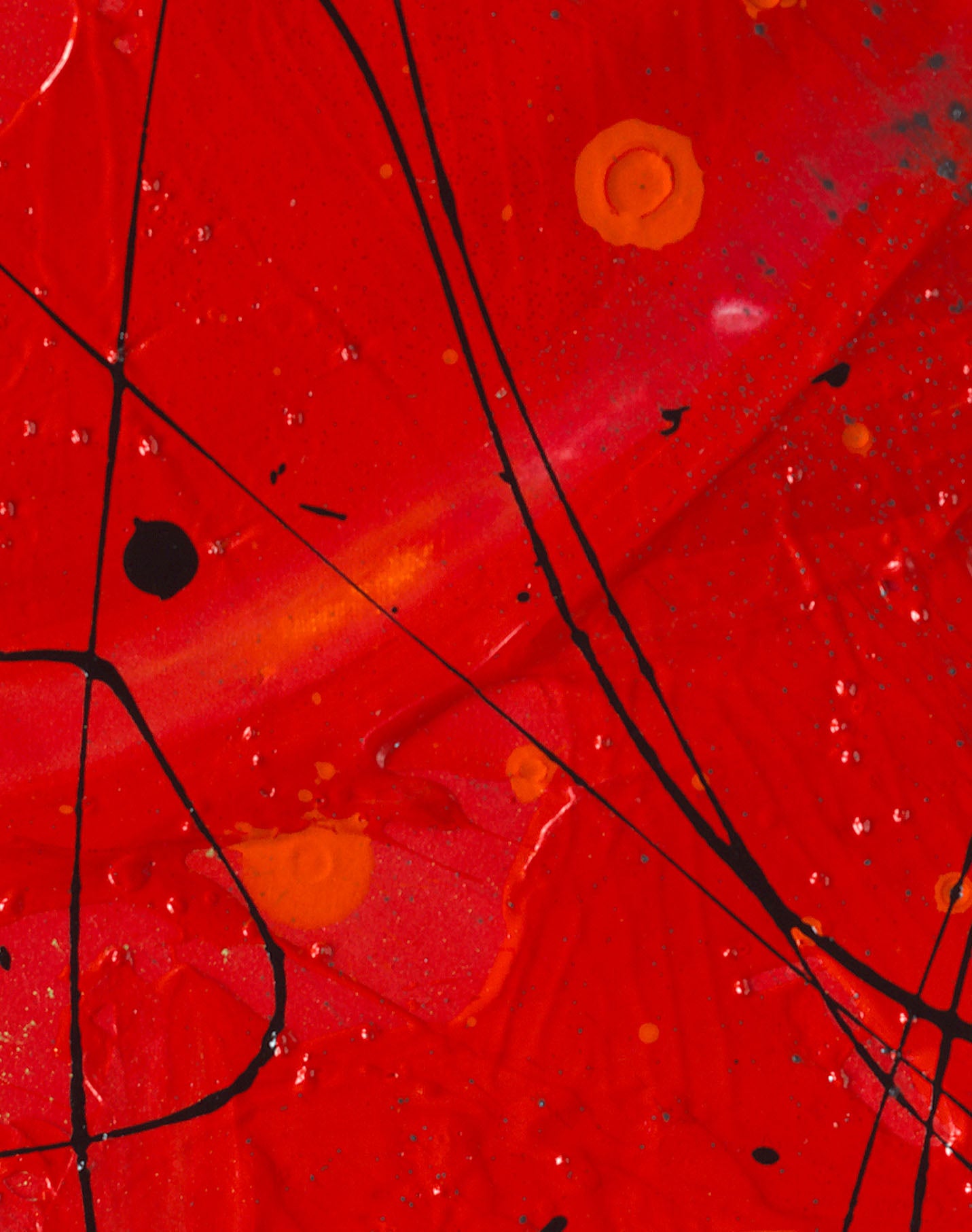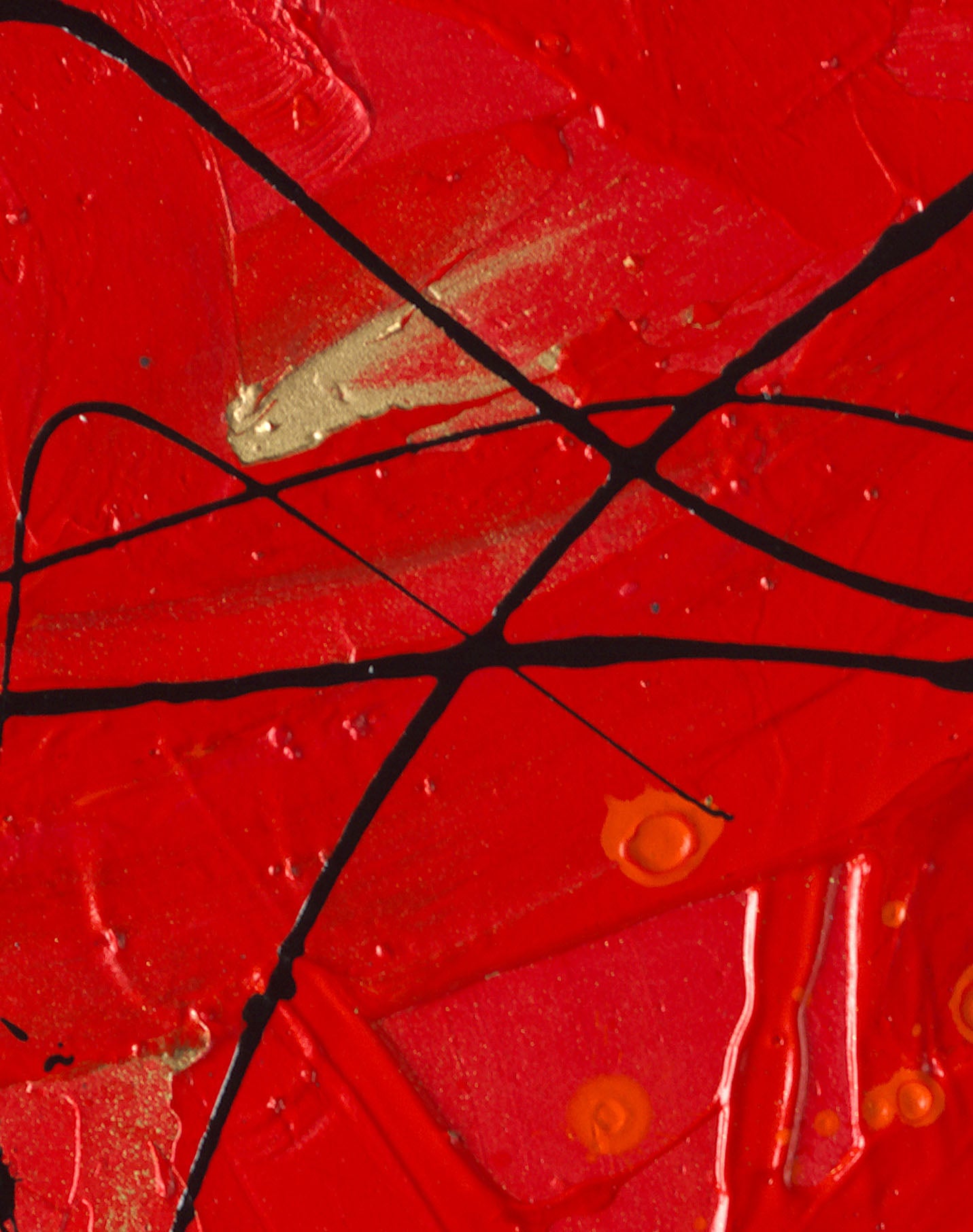 Spachteltechnik, strukturierte Acryl-Farbbasis auf Leinwand mit mehrfarbigen Schichten, verstärkt durch ausgefallene Farbkrümmungen.