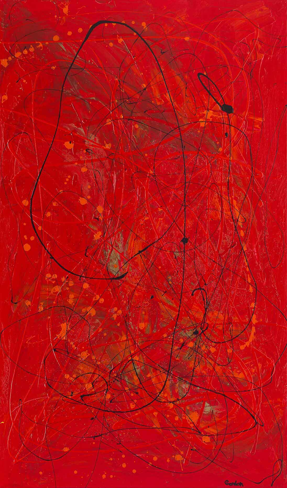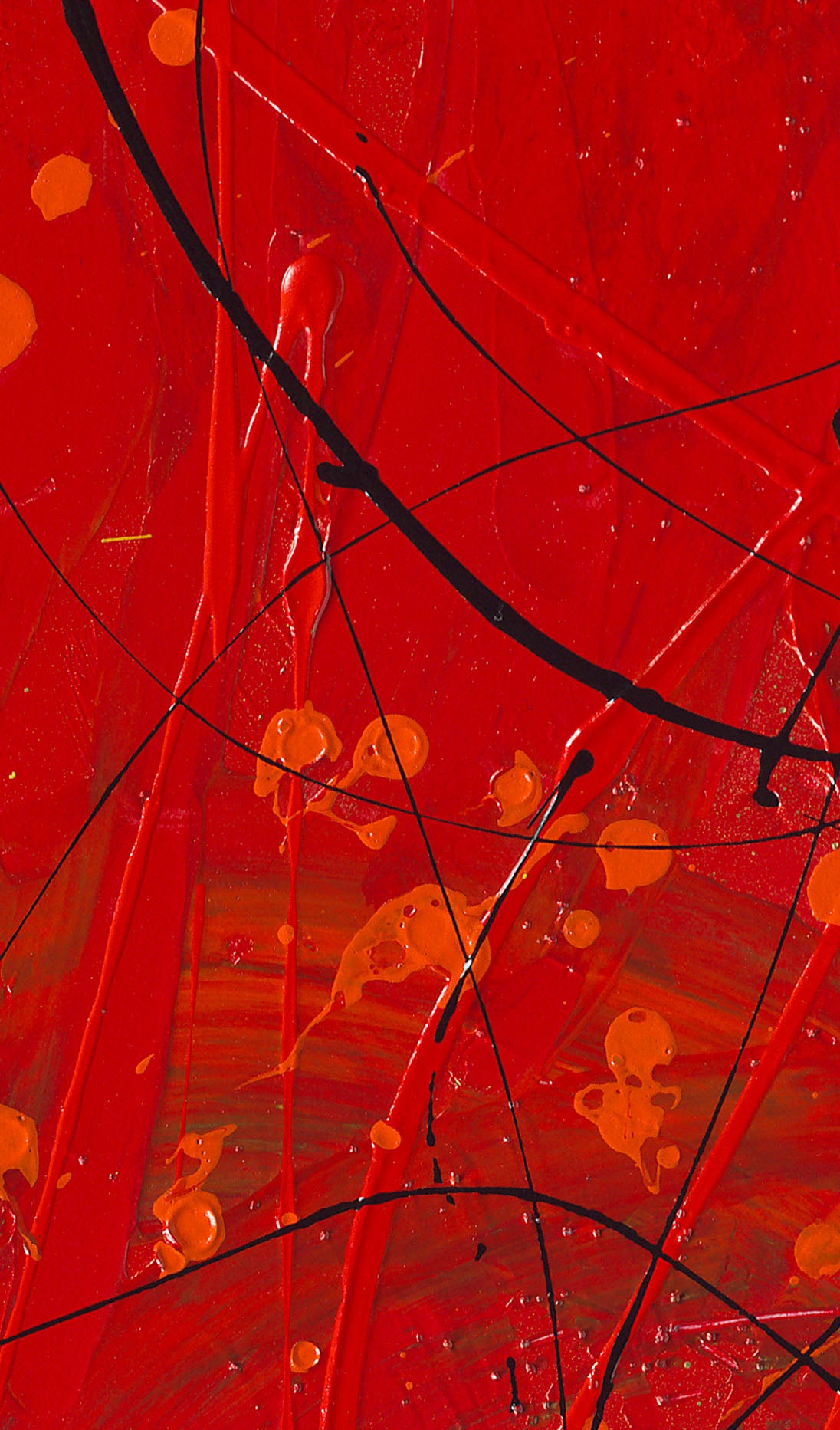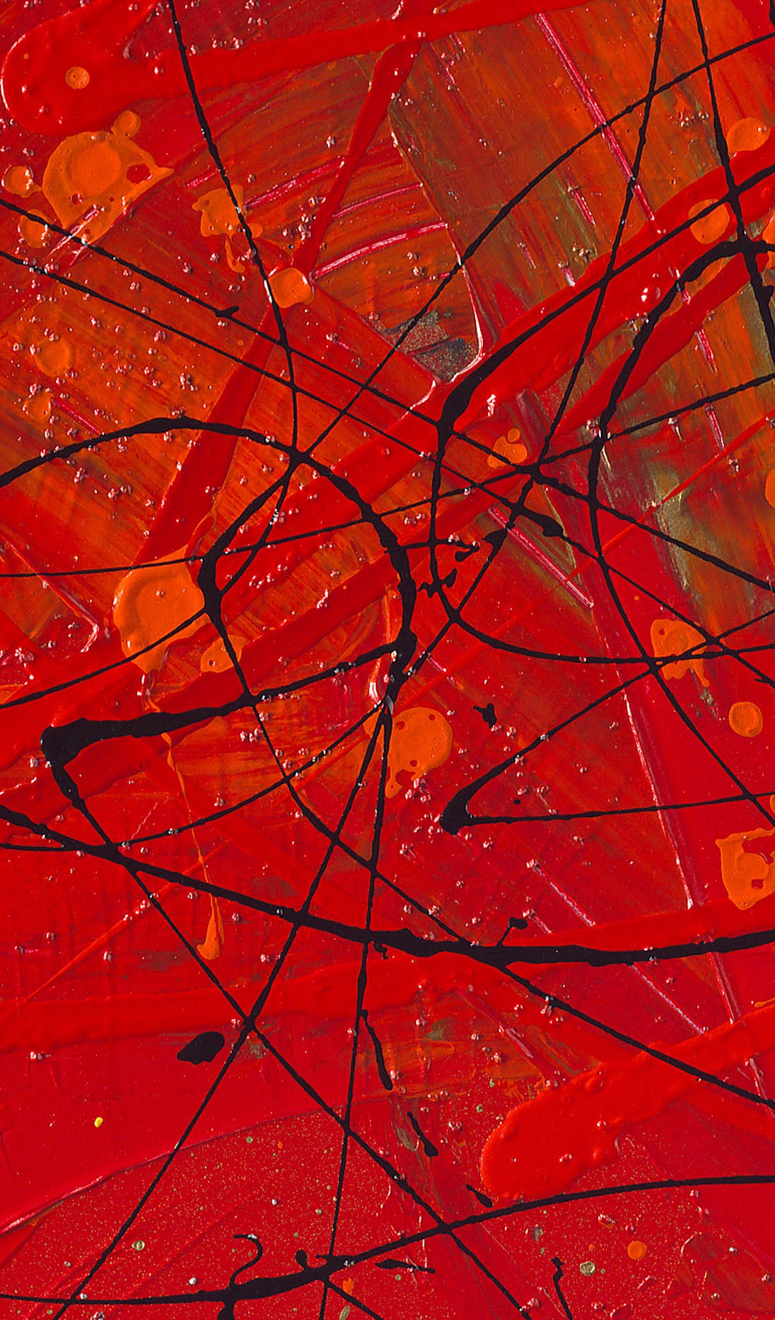 Spachteltechnik, strukturierte Acryl-Farbbasis auf Leinwand mit mehrfarbigen Schichten, verstärkt durch ausgefallene Farbkrümmungen.