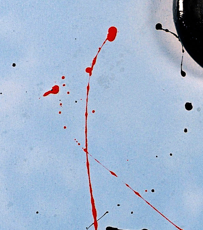Imagine this stunning 85 x 95 cm (33 x 37 in) painting gracing your living space, infusing it with a sense of vitality and sophistication. The vibrant yellow canvas, punctuated by bold black rings and a spatter of red, creates a visual dialogue that is both stimulating and harmonious. Collectors who value pieces that speak to both tradition and modernity will find themselves drawn to the exquisite duality present in this work.