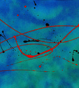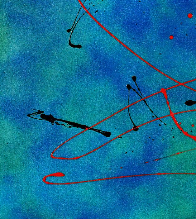 Imagine the interplay of light and shadow as it dances across the 3D textured surface, a testament to Gordon's innovative spray technique. The vibrant blues are punctuated by dynamic red spatters, creating a visual dialogue that speaks to the soul. This painting isn't just a decoration; it's a conversation starter, a statement of cultured elegance, and a powerful energy source for the discerning collector.